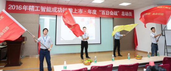 红旗飘飘,舞动的四面旗帜拉开了誓师大会的序幕。公司首先回顾了近年来“百日会战”誓师大会的历程片段,不禁深感年年日日,唯奋斗者会给企业历史留下痕迹!随后,公司隆重邀请2015年度优秀员工作为标兵榜样上台接受全公司对他们的敬意,同时也激励更多的精工人能够积极向上,奋勇争先!KEYDOM(精工智能)一直坚信创造价值的员工才是企业最核心的资本,是企业最尊重的对象,是企业文化存在的灵魂。同时,精工也大力栽培认可公司梦想和价值观的优秀员工,将为愿意与公司一起成长,共同收获的员工投入和提供更多的优渥资源、薪资福利和成长平台!