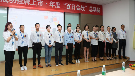 誓师大会上,我司总裁朱琳琳点明,KEYDOM(精工智能)已经完成了从0到1的创新跨越,在最后的100天,精工人更应该以“团结”为中心,将欣欣之火迅速覆盖广袤的中华大地。紧接着各中心领导带领其部门向公司郑重宣誓“在未来的一百天,全力以赴,绝不找借口,坚决保证完成任务目标”!精工伙伴们,让我们一起为荣誉而战,为使命而战!