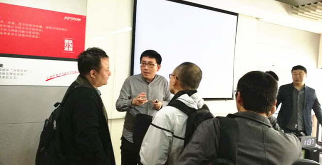 (演讲结束,KEYDOM员工意犹未尽乐于问学王教授)