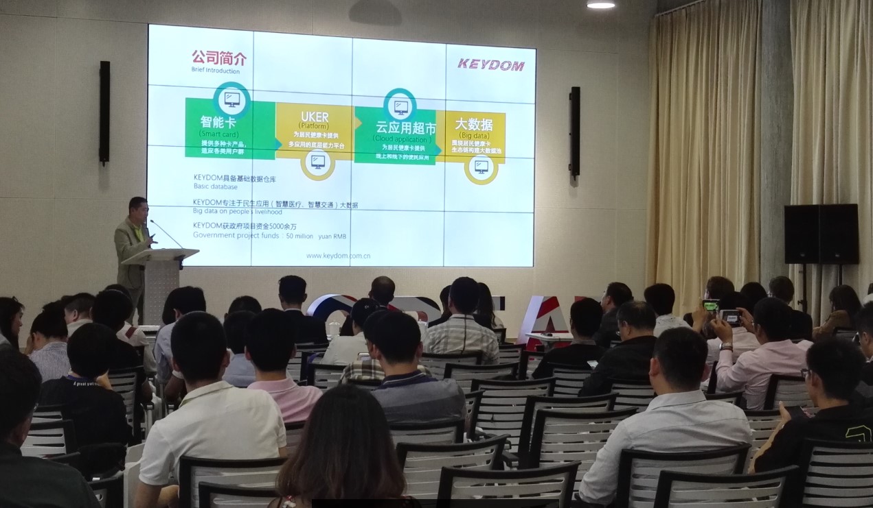 四川精工伟达智能技术股份有限公司(以下简称KEYDOM)副总裁朱星伟作为中国公司代表发言,他说KEYDOM致力于“智能卡+UKER平台+云应用超市+大数据”战略目标,围绕智能卡生态链构建大数据池。“UKer-慧生活”平台作为连接行业和用户的桥梁,从智能卡数据来源、分类、加载到智能卡生产、发行、应用和营销服务,打通了智能卡线上和线下的使用,让智能卡插上翅膀!Uker和智能卡的完美结合,完整的记录了智能卡生命周期数据和轨迹,形成Uker数据池,并有效利用数据算法和挖掘工具为行业客户提供更精准的智能卡数据应用服务。KEYDOM具备基础数据仓库,将力促西部民生应用(智慧医疗、智慧交通)大数据发展。