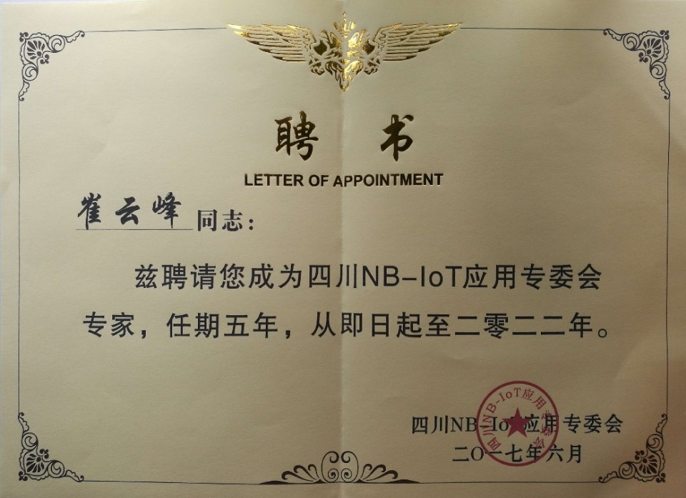 四川NB-IoT应用专委会聘请KEYDOM三位专家