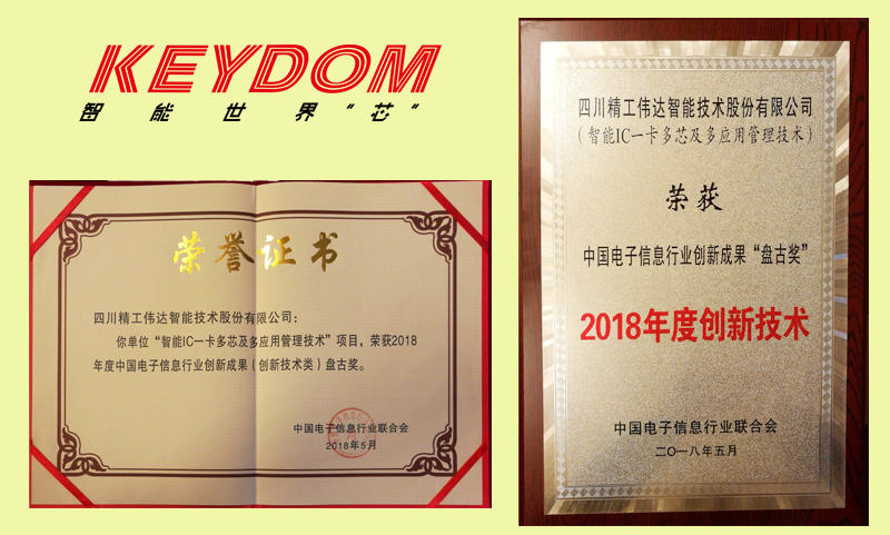 5月22日,中国电子信息行业联合会(简称:电子联合会)“2018年中国电子信息行业创新成果推广大会”在四川广安召开。电子联合会顾问、原信息产业部副部长吕新奎,工业和信息化部电子信息司副司长乔跃山、科技司巡视员毕开春,广安市委副书记、市长曾卿,四川省经信委副主任王文胜等出席并讲话。四川精工伟达智能技术股份有限公司(简称KEYDOM)受邀参加此次会议,其项目“智能IC一卡多芯及多应用管理技术”喜获中国电子信息行业创新成果(盘古奖)创新技术奖。