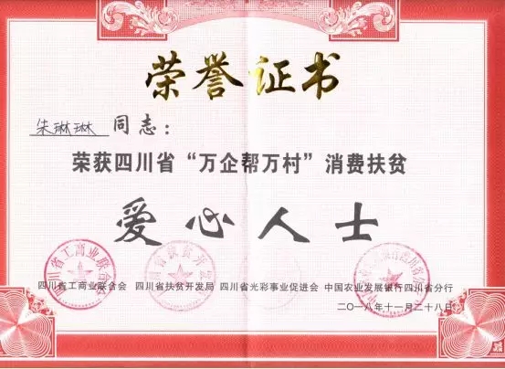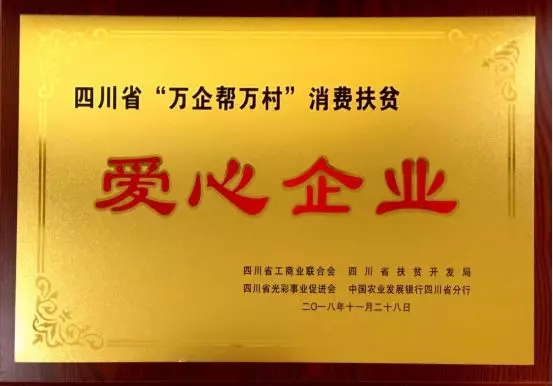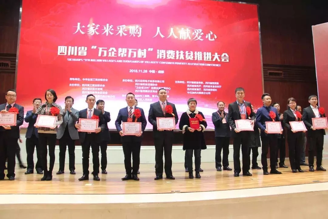 大会现场还为线上线下消费前100名企业代表、消费个人代表分别授予“四川省‘万企帮万村’消费扶贫‘爱心企业’和‘爱心人士’”荣誉牌匾及证书。
