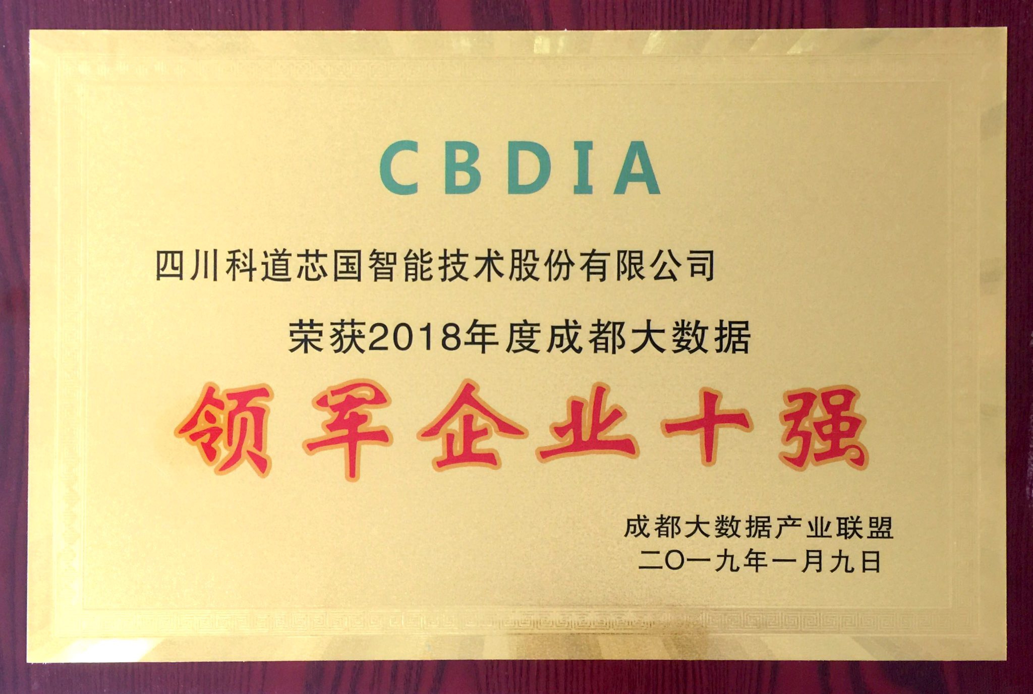 2019年1月9日,成都大数据产业联盟年会暨产业交流活动在成都天府软件园C区举行。会上进行了“2018年度成都优秀大数据产品”、“2018年度成都大数据新锐企业十强”、“2018年度成都大数据领军企业十强”颁奖授牌仪式,凭借大数据领域产品应用解决方案,四川科道芯国智能技术股份有限公司(以下简称KEYDOM)荣获”2018年度成都大数据领军企业十强”荣誉。