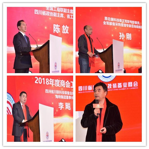 全国工商联副主席、省政协副主席、省工商联主席陈放,原总装科技委正军职专职委员、全军装备采购管理专家咨询组组长孙刚将军,省委统战部副部长、省工商联党组书记、常务副主席陈泉,省科技厅直属机关党委书记、党组成员吴成,省工商联党组成员、副主席袁明,省工商联党组成员、秘书长廉南和资深军事专家、央视特约军事评论员杜文龙,全军武器装备采购专家组资深专家、火箭军原北京军代局总工杜茂荣,空军军通军代局高工谭云刚,全联科技装备业商会秘书长乔晓林,经济学家、西南财大智库CEO汤继强,电子科大航空工程学院副院长、博士生导师李辉和省委军民融合发展委员会办公室、省发改委、省经信厅、省商务厅、省国防科工办、省工商联各相关处室领导及我会会员单位共计200余人出席了此次会议。