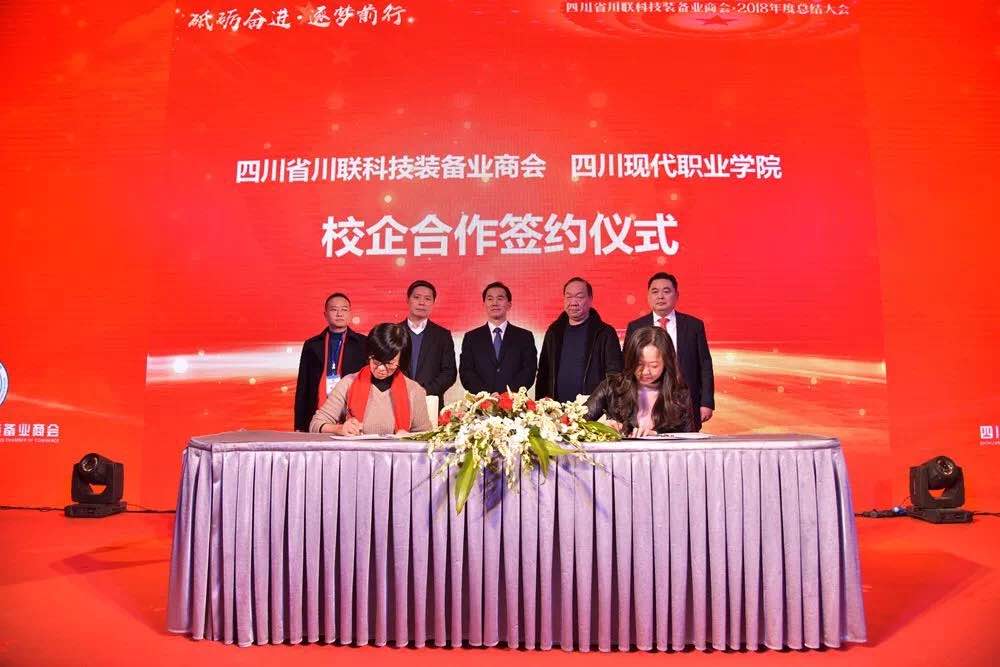 校企合作签约仪式上,商会和四川现代职业学院本着平等自愿、共同促进、合作发展的原则,达成校企合作协议。